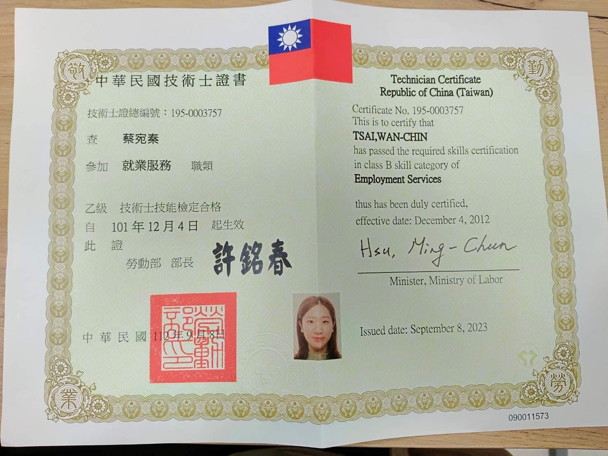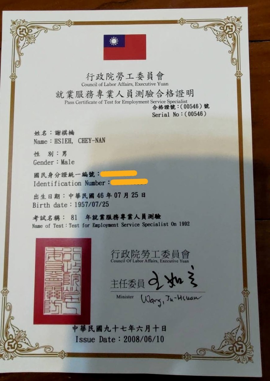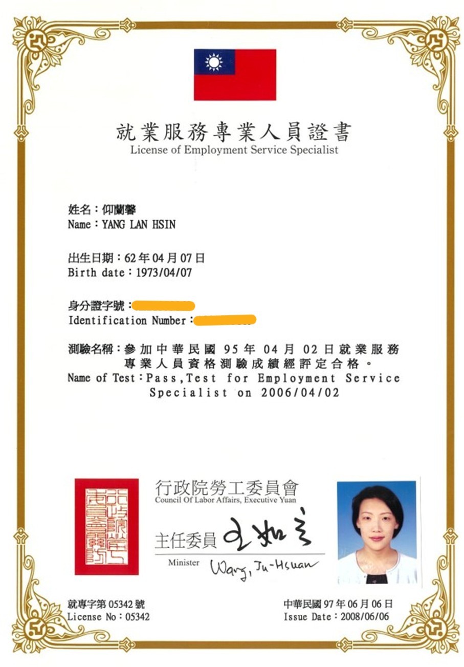 以下是典育專業就業服務人員的證照:
