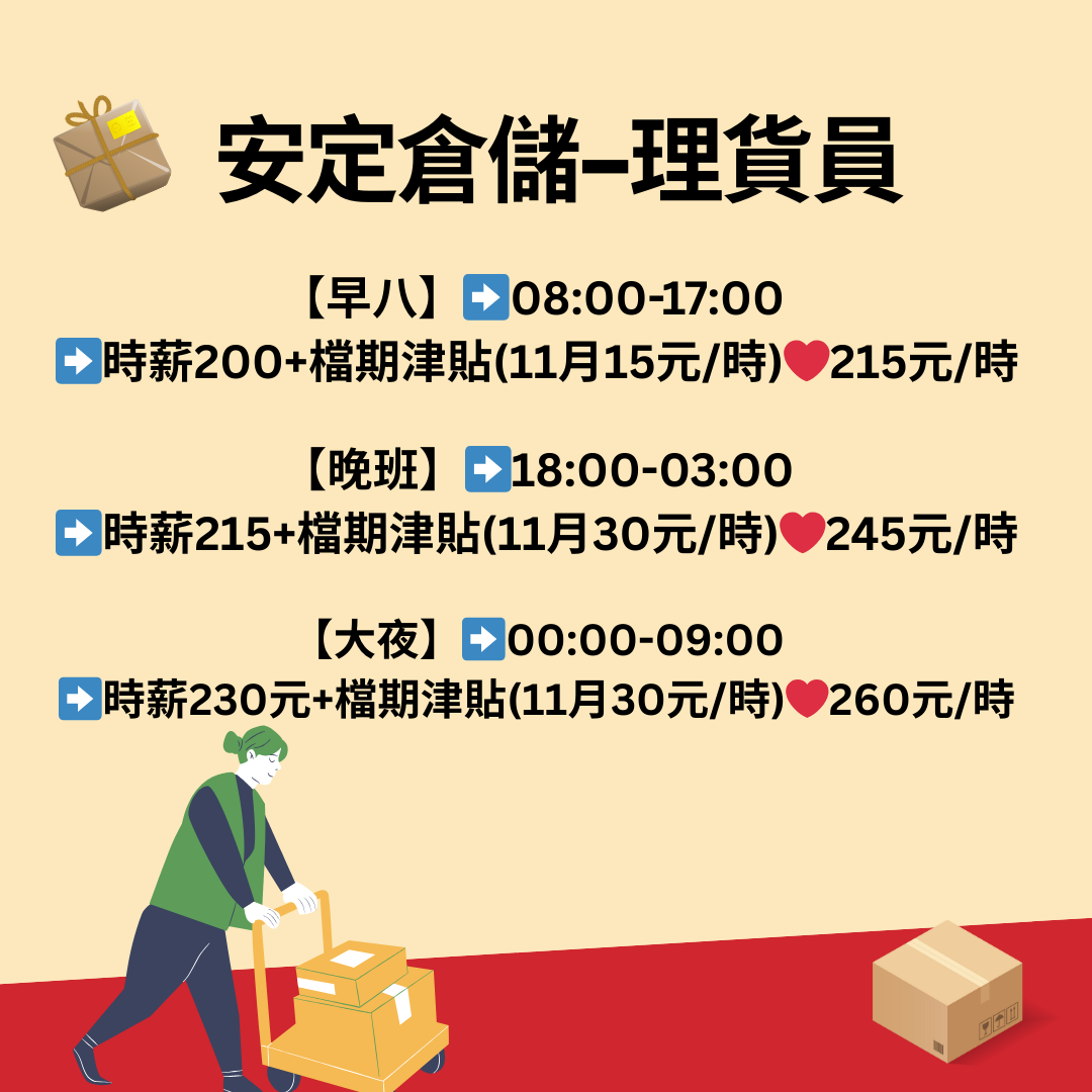 【職缺公告】安定🌟高時薪🌟額外津貼