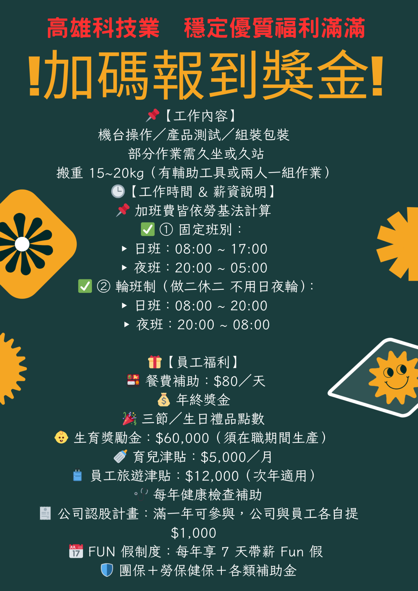 常日/做二休二日:報到獎金15000