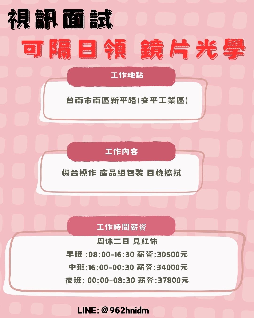 【職缺公告】台南鏡片光學大廠🤩見紅休